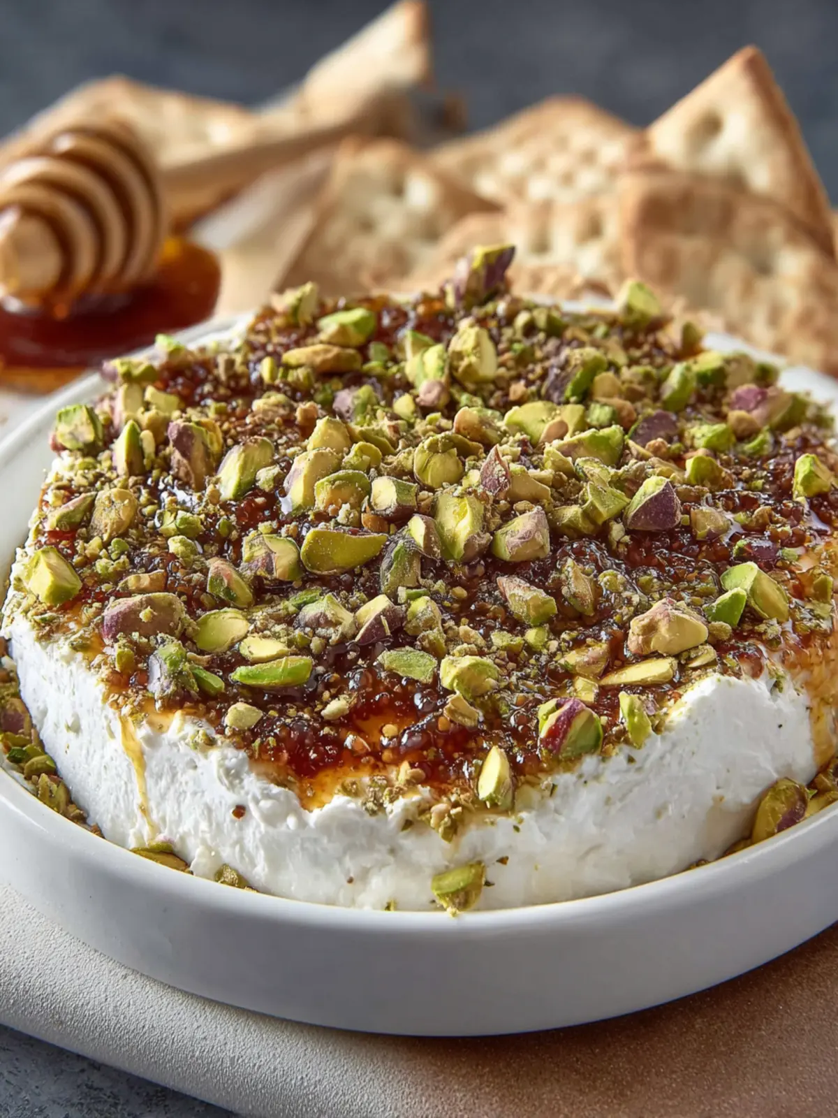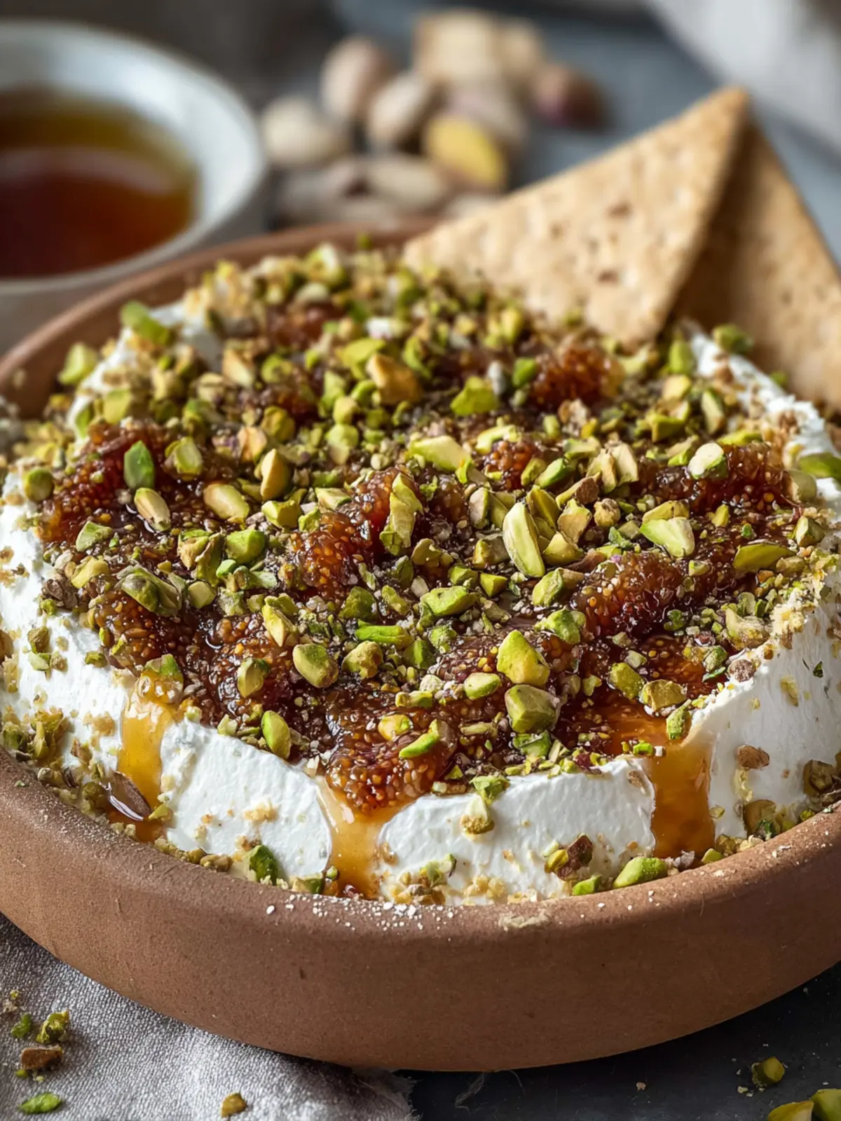 Pistachios: Chopped pistachios bring a delightful crunch and nutty flavor to the dip. Not only do they add texture, but they also enhance the overall aesthetic with their vibrant green color. If you have nut allergies, sunflower seeds could be a great substitute.