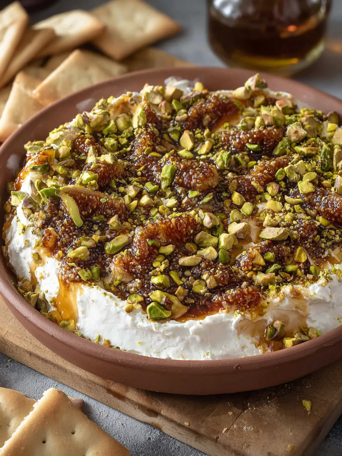 Crafted for simplicity, this dip is not only quick to prepare, but it also delivers on taste and presentation. The soft, tangy notes of the goat cheese mingle beautifully with the rich sweetness of fig jam, creating a balance that is hard to resist. Topped with finely chopped pistachios, the dish gains a satisfying crunch, making it a feast for both the eyes and the palate.