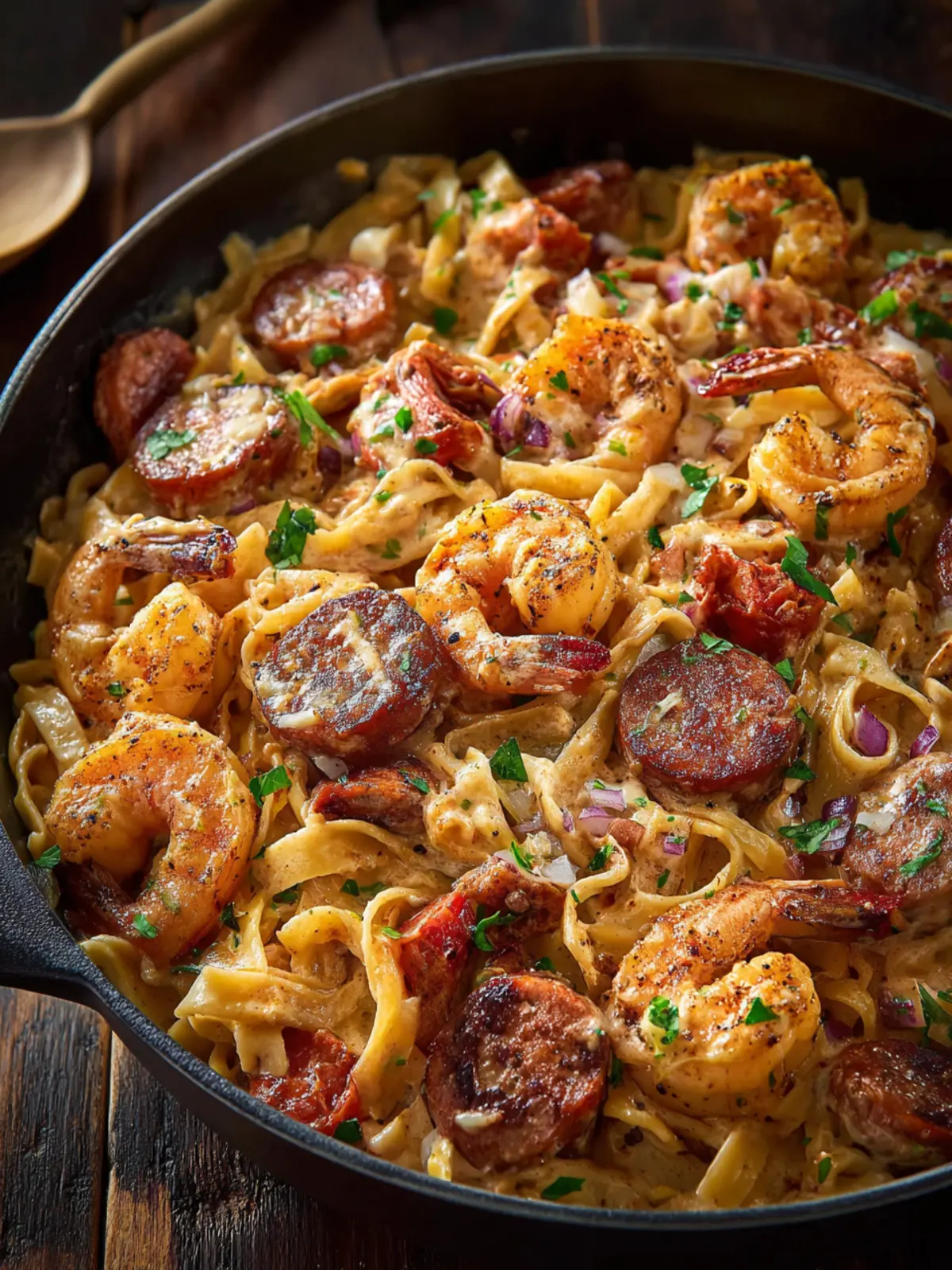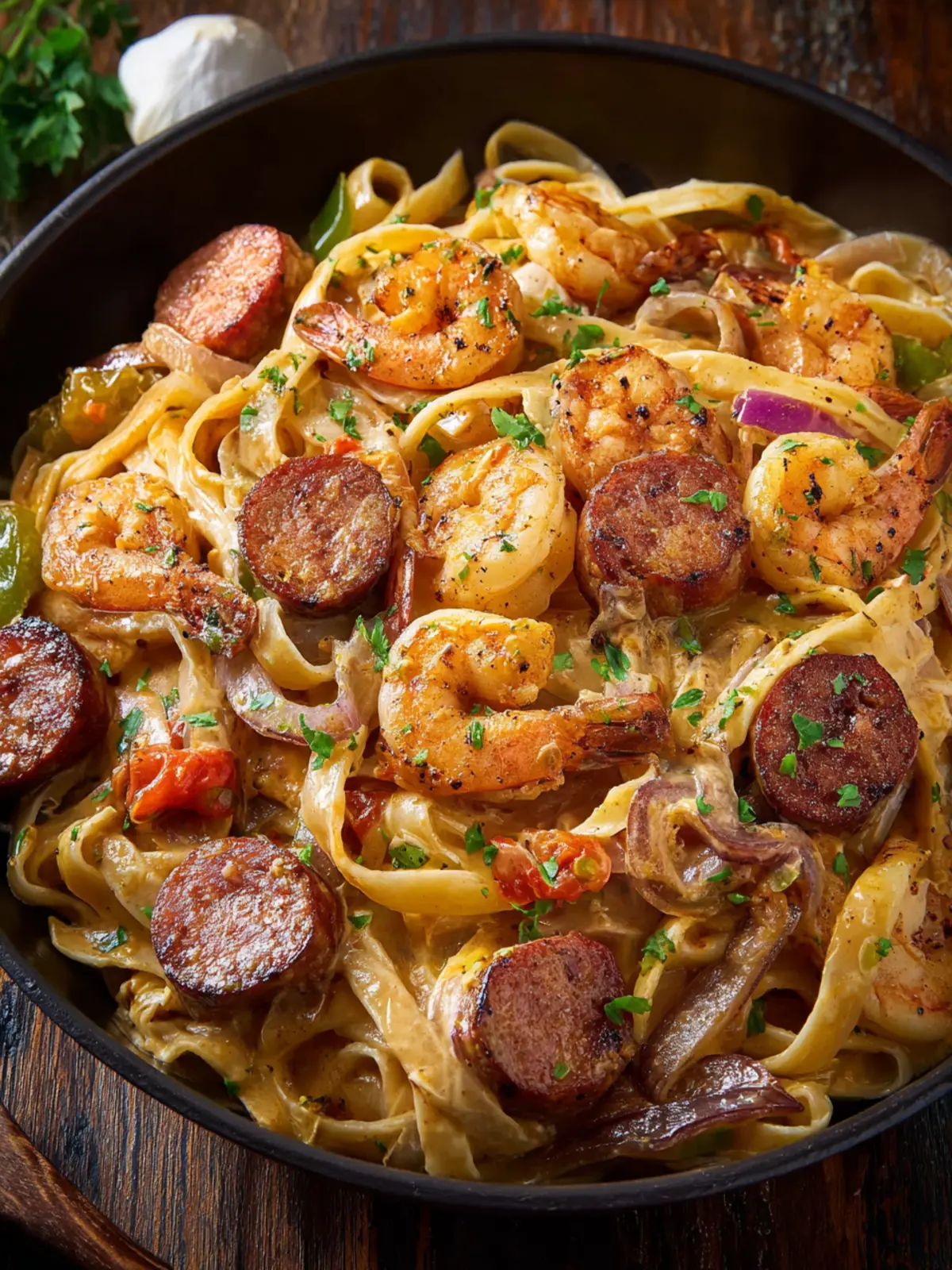 Those who cook often will tell you that the best ingredients do the most work. For this recipe, fresh shrimp and a hearty sausage—such as andouille—are key. They bring not just taste, but also a satisfying protein punch. Pair them with your favorite pasta, and the result is a dish that’s not only filling but also visually tempting. A sprinkle of herbs at the end adds a touch of freshness that brightens the whole meal.