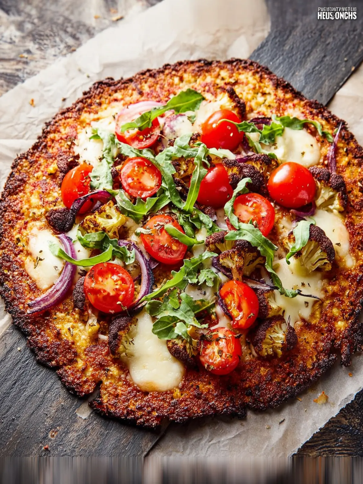 A delicious alternative to traditional pizza crust, made with cauliflower.