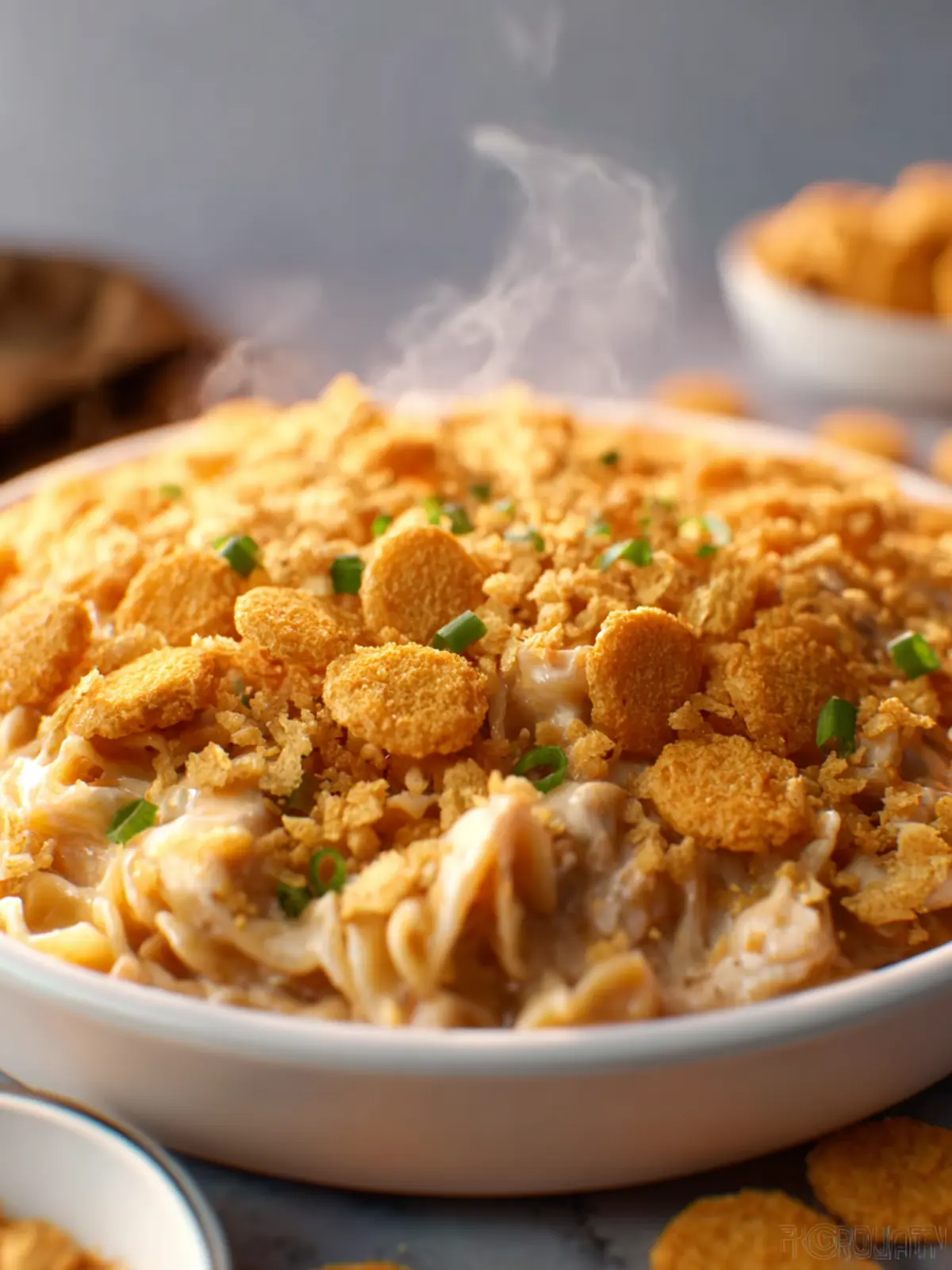 The crumbled Ritz crackers are a star ingredient here. For an extra crunch, melt some butter and mix it with the crushed crackers before sprinkling them on top of the casserole. This creates a golden layer that’s irresistibly crispy, adding a delightful texture contrast to the creamy filling.