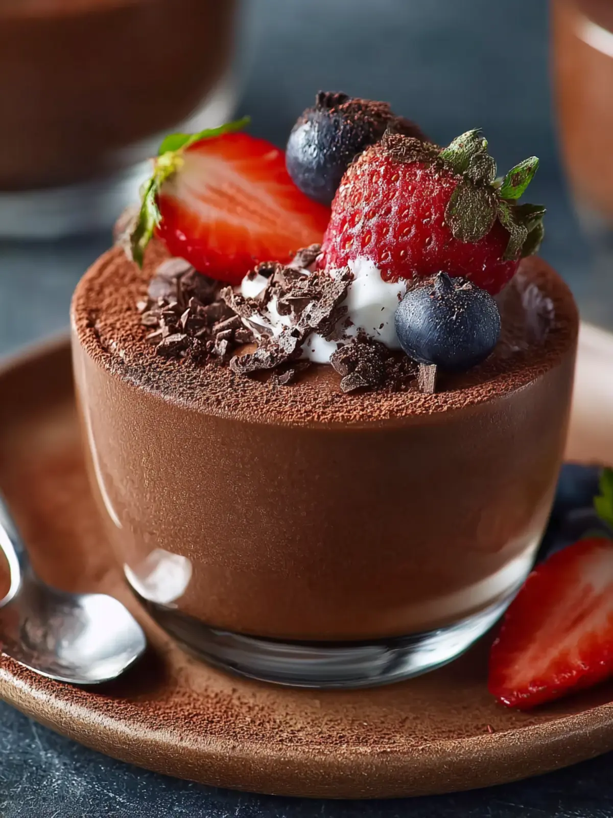 A delicious and thick chocolate protein pudding made with Greek yogurt and cocoa powder. Perfect for a healthy dessert or snack!