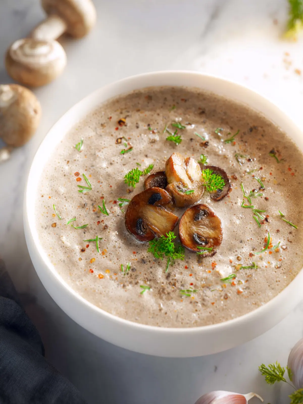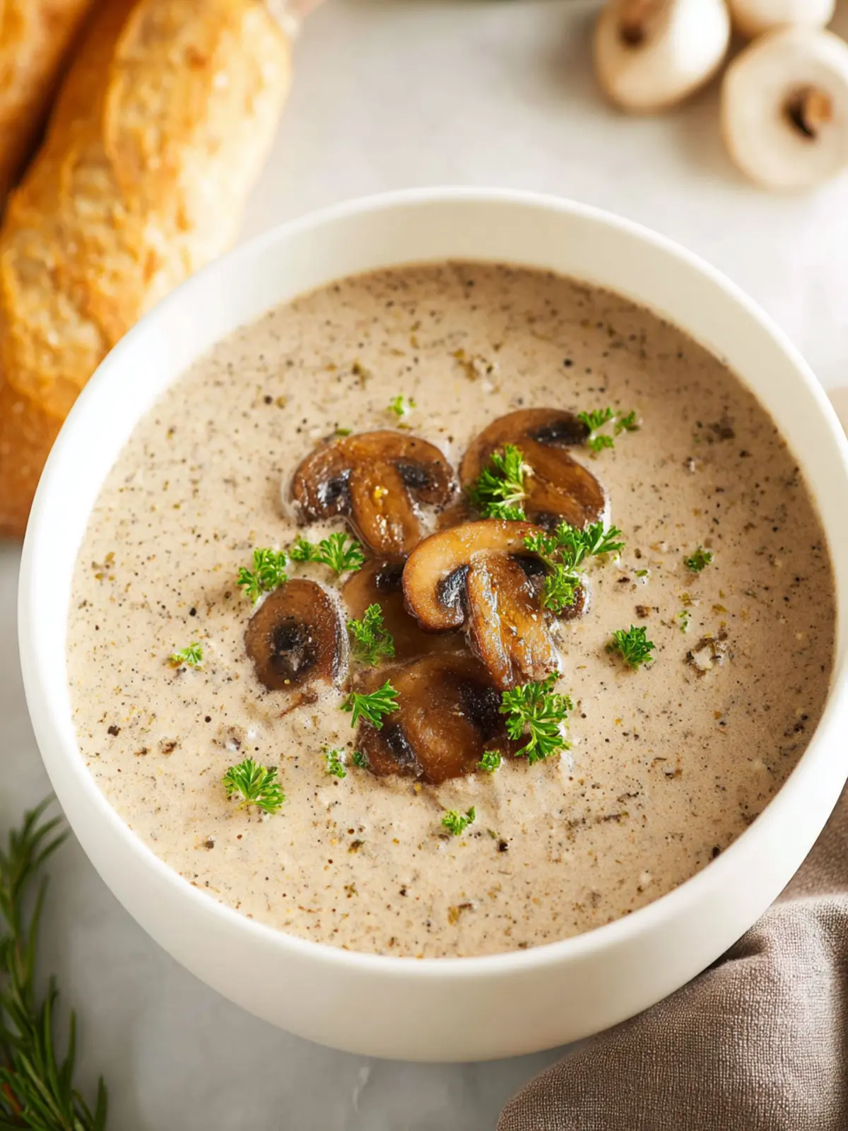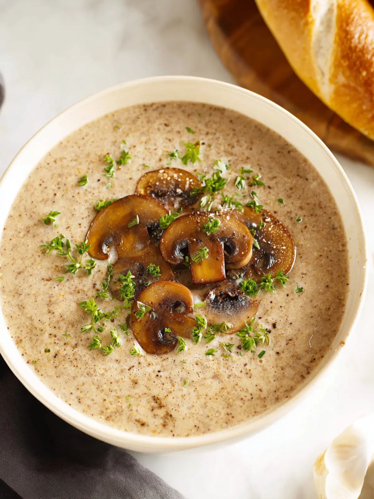 A rich and creamy mushroom soup perfect for a cozy meal.