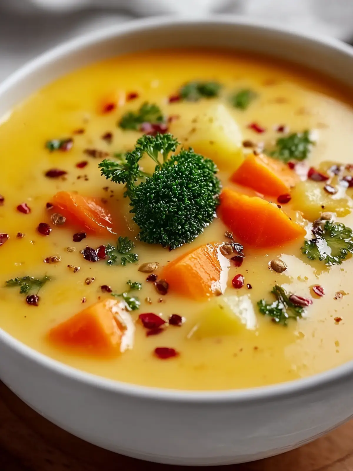 A comforting and creamy vegetable soup perfect for a cozy meal.