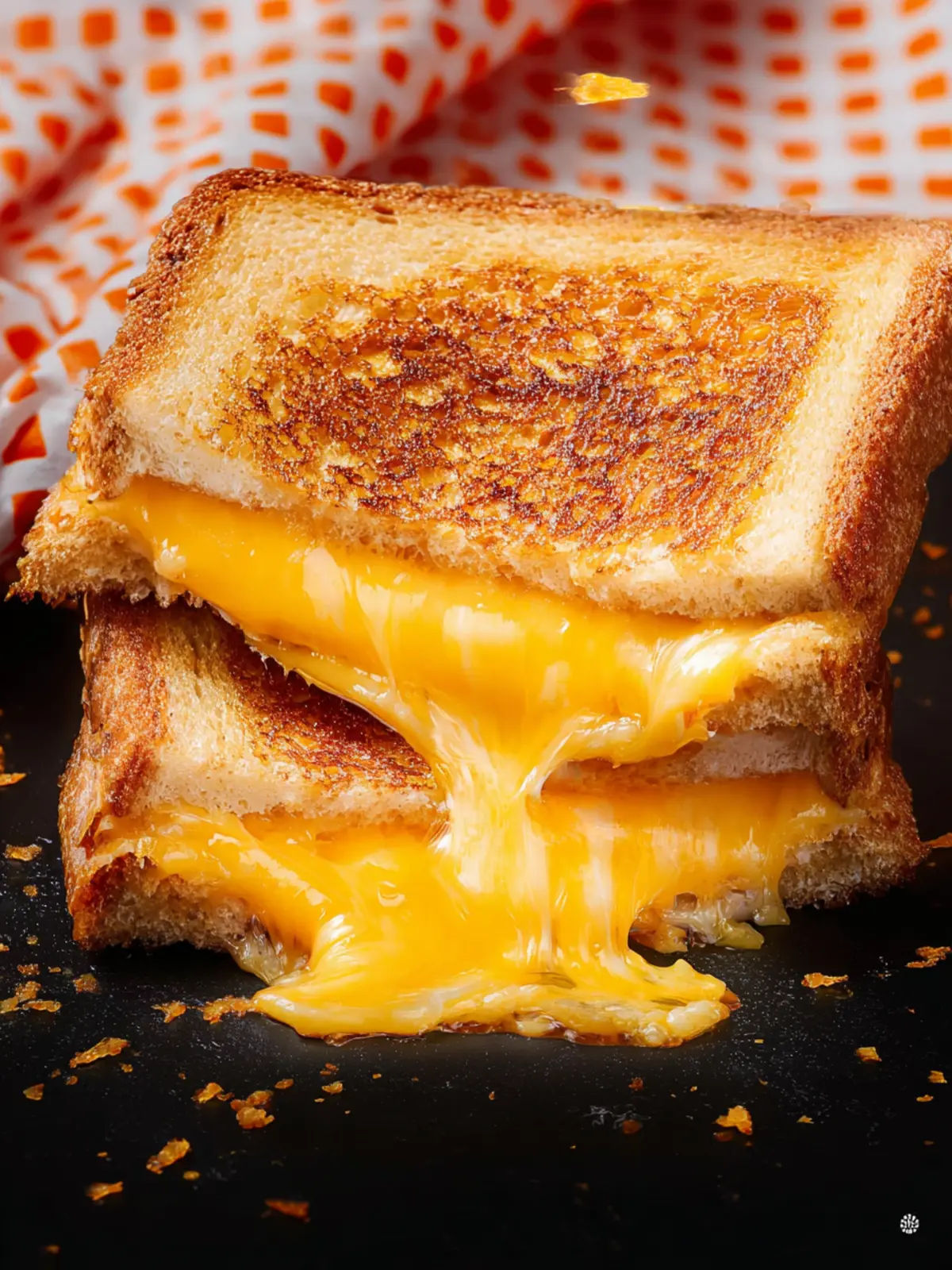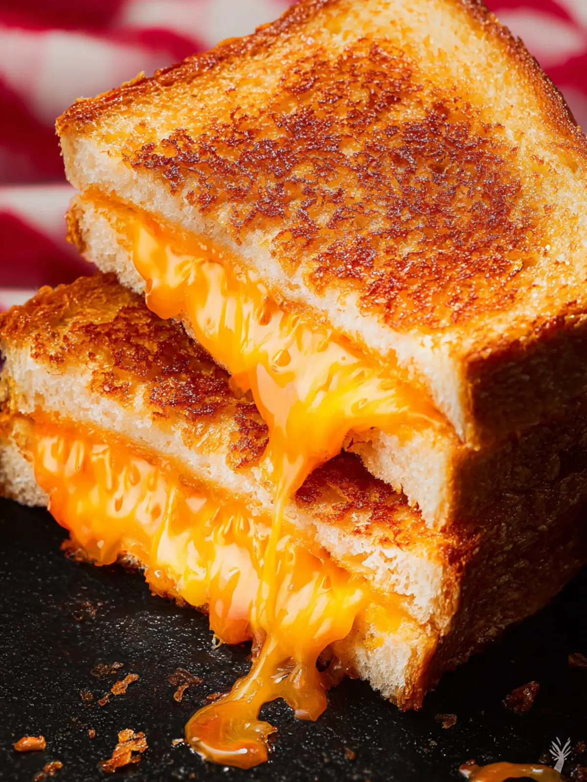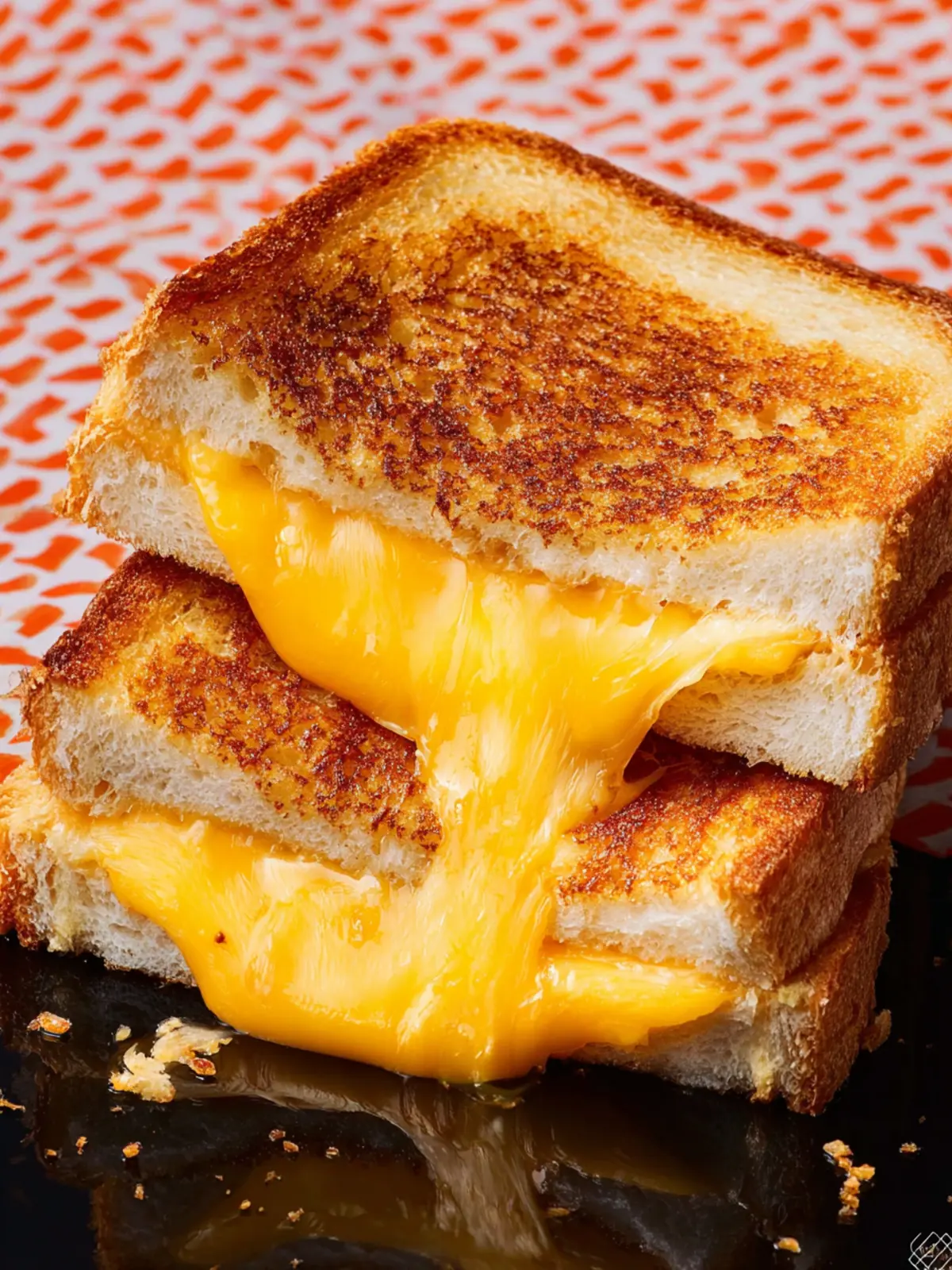 Perfectly Toasted Bread: The bread is toasted to a perfect golden crisp, creating a stunning contrast to the rich cheese filling.