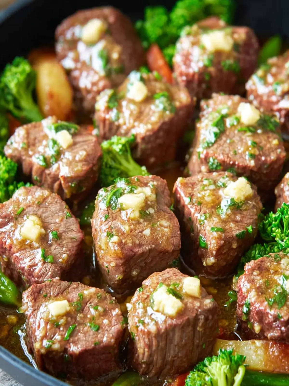 Succulent steak bites tossed in garlic butter for the perfect savory treat.