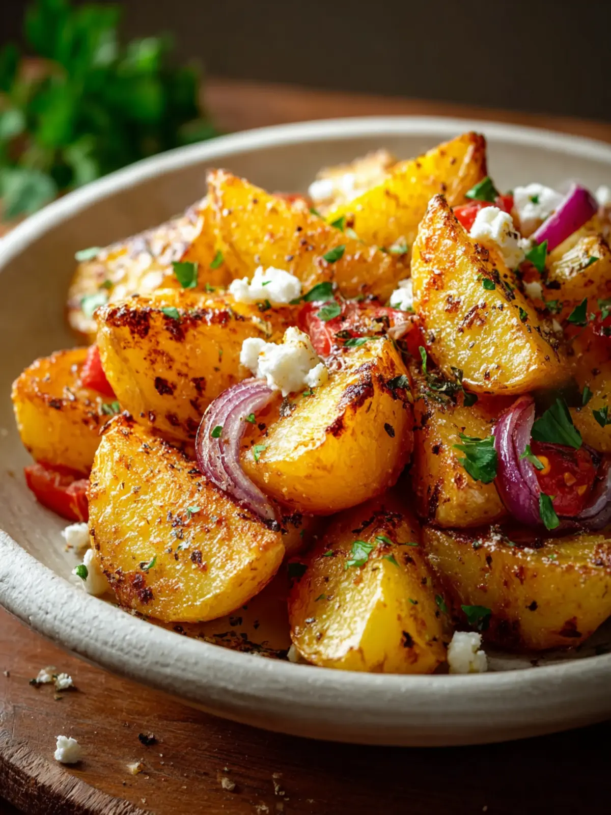 Consider crumbling some tangy feta over your potatoes just before serving. The saltiness of the cheese enhances the dish and adds a creamy texture. This rendition is particularly delightful with a fresh Greek salad on the side.