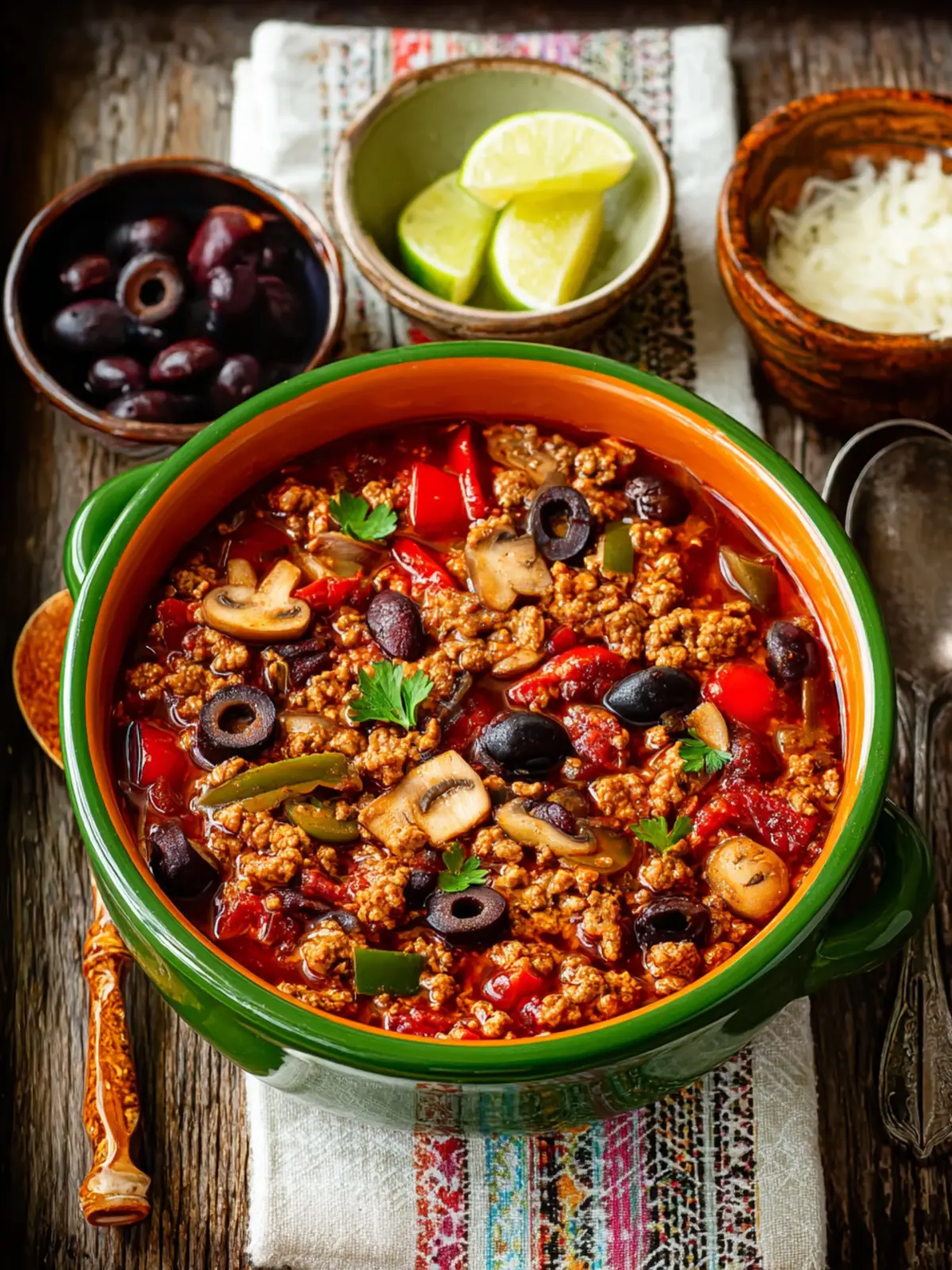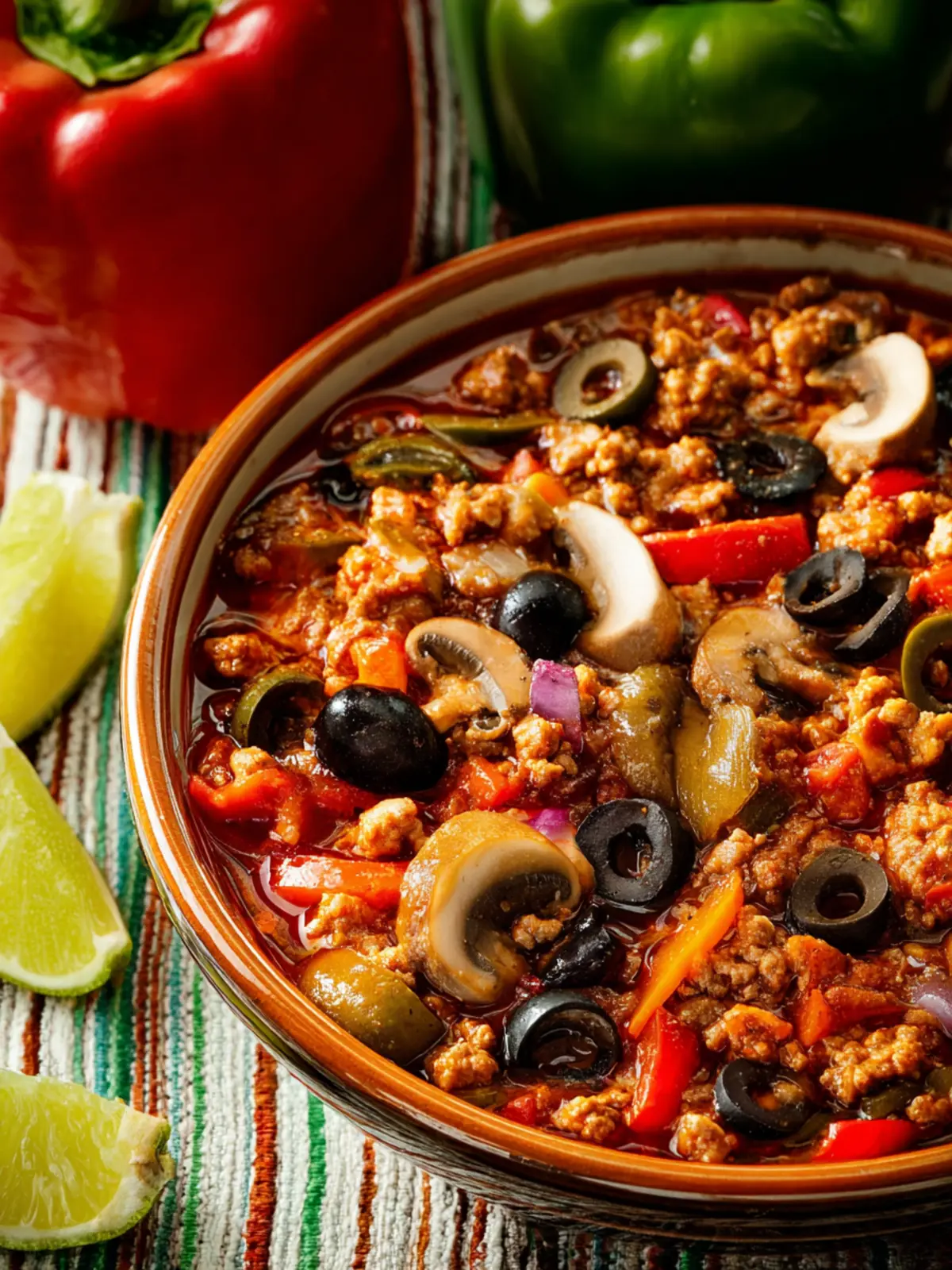Ground Turkey Chili: Hearty Delight with Peppers & Olives