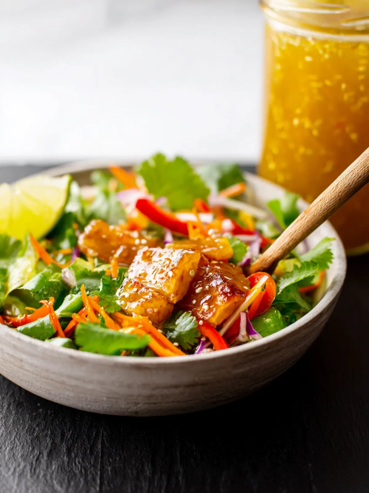- Chicken or Tofu: Use the vinaigrette as a marinade for grilled chicken or tofu. The honey and ginger infuse flavor while keeping the proteins juicy and tender.