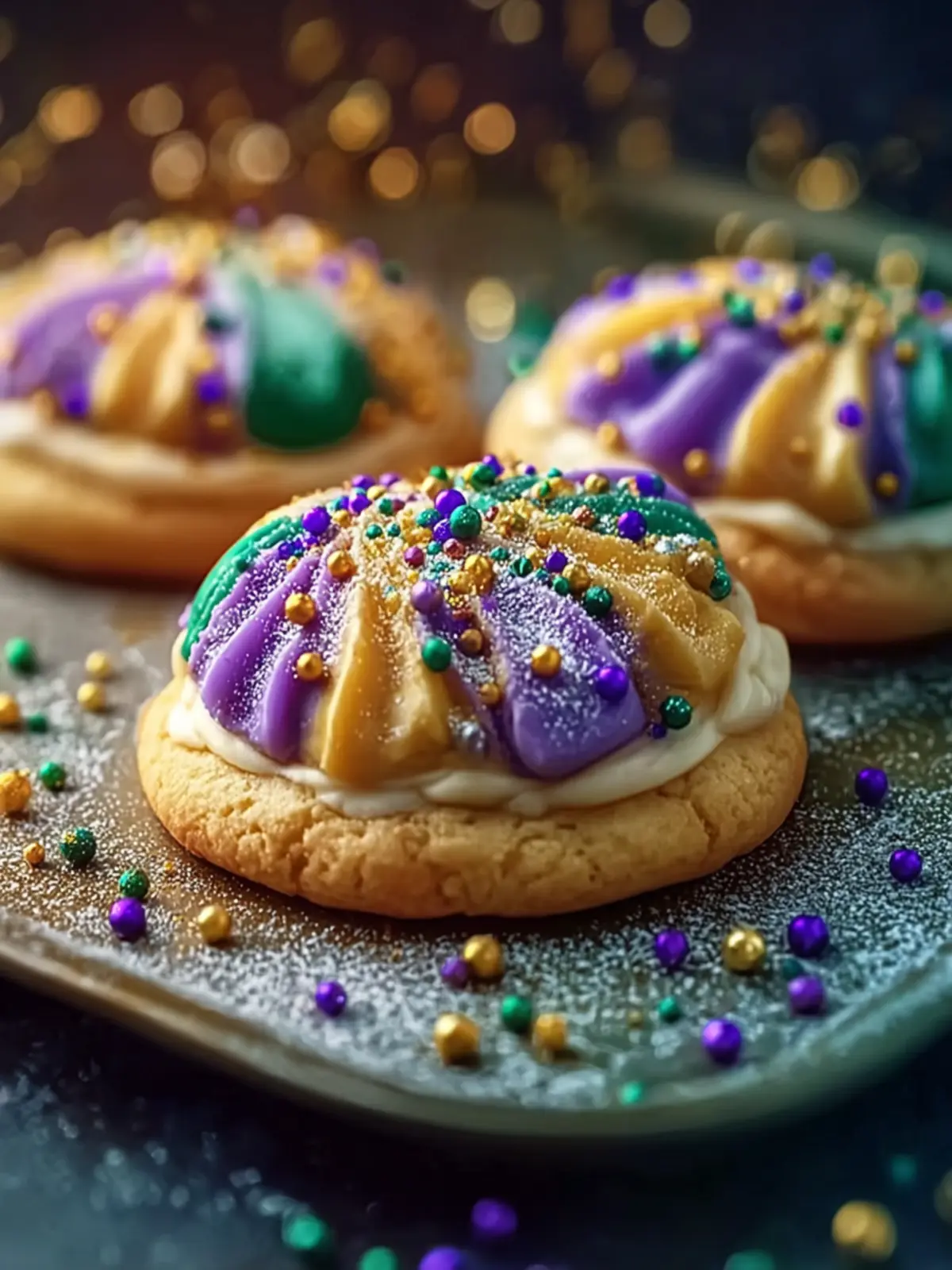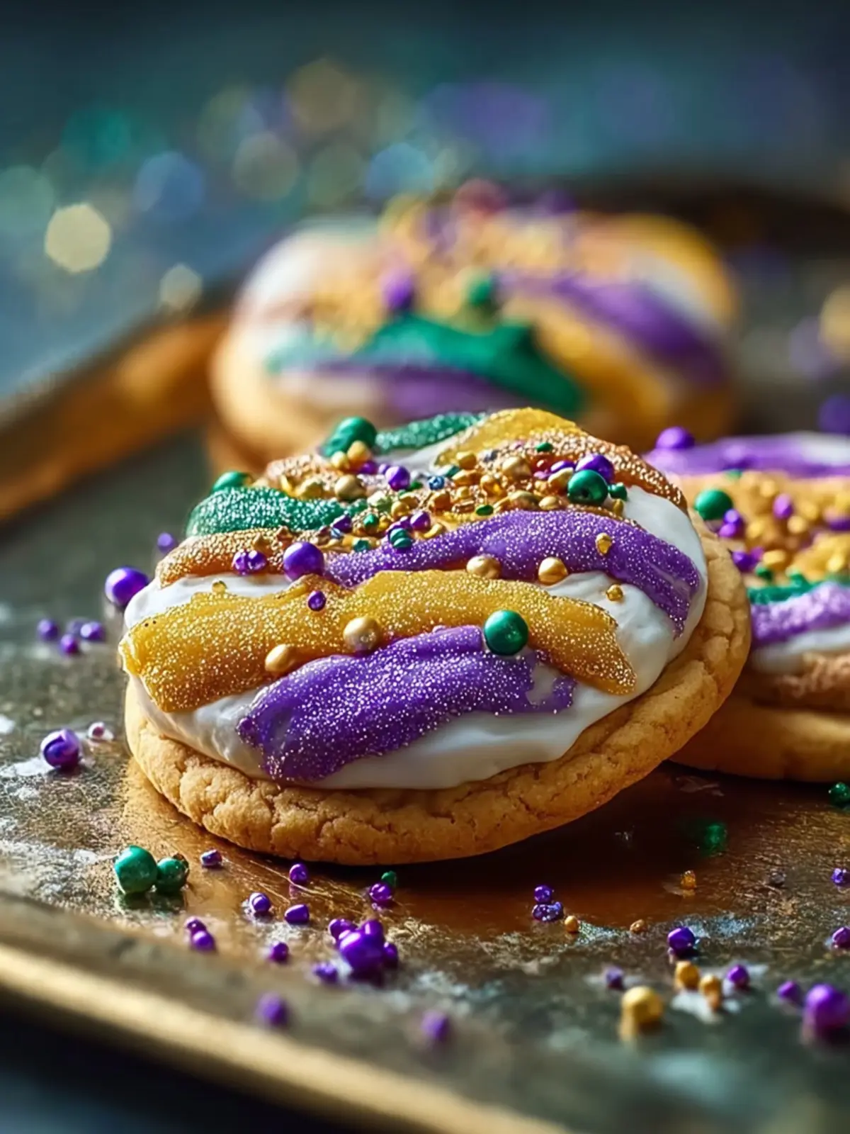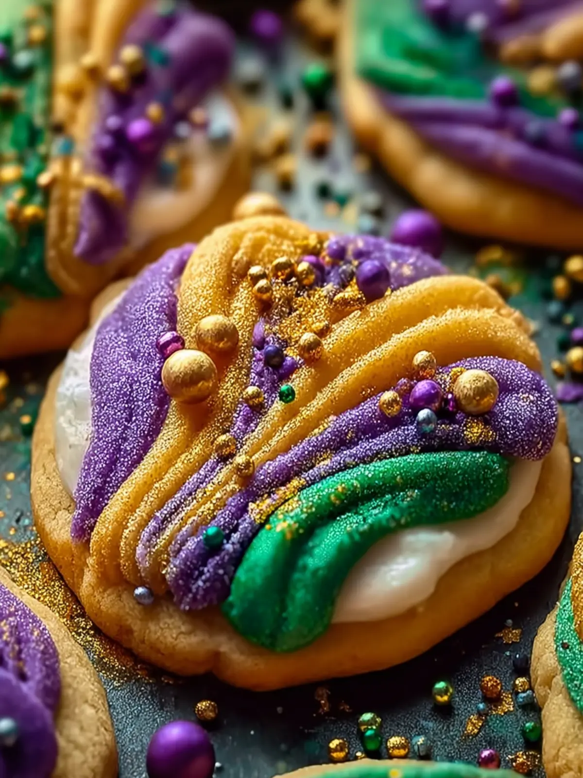 Celebratory Colors: The iconic Mardi Gras colors—purple for justice, green for faith, and gold for power—transform these cookies into a visual feast. When you share them, you share a bit of the parade spirit, complete with festivity and fun.
