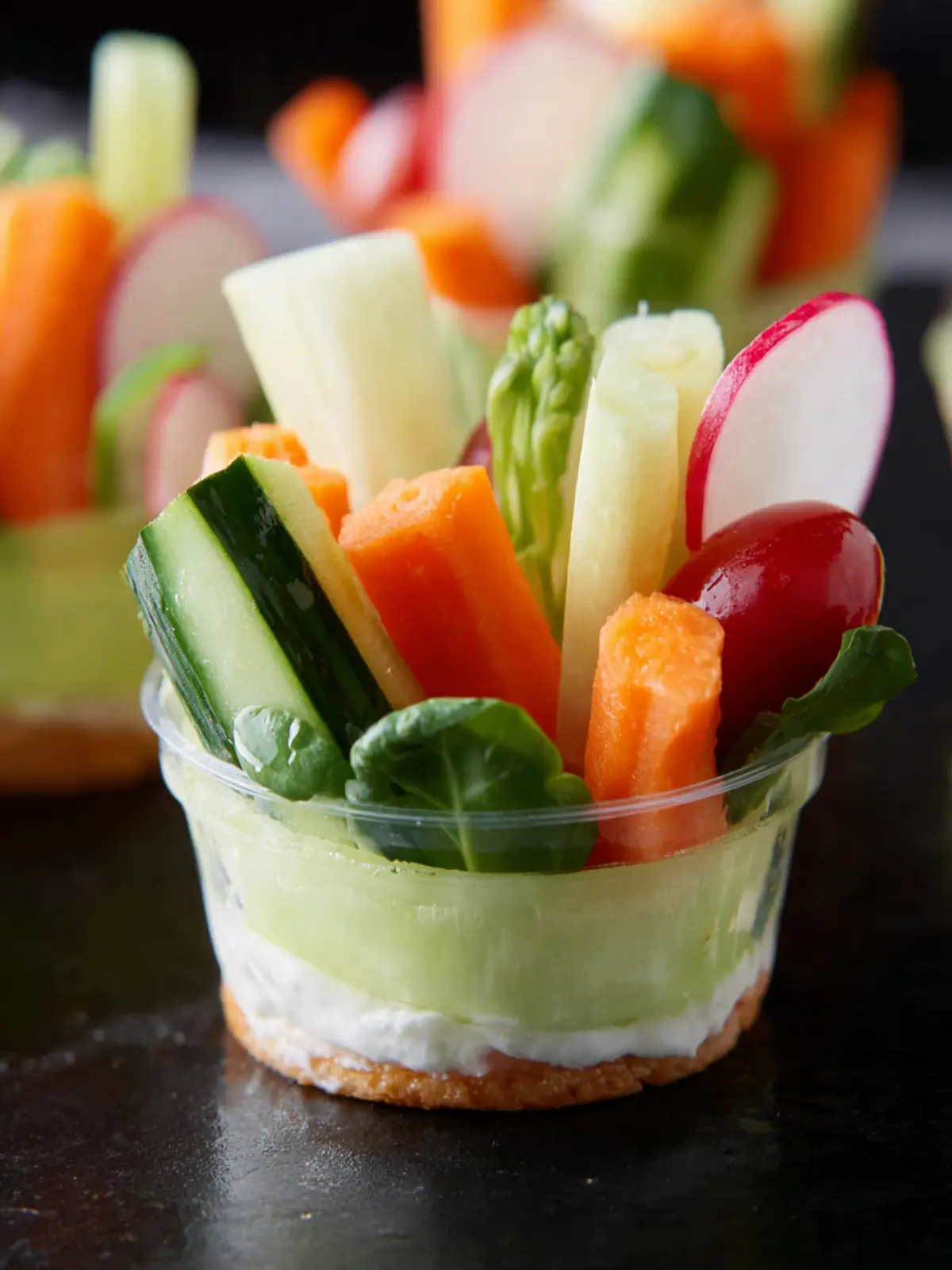 You can elevate your mini veggie cups by mixing and matching various veggies:
