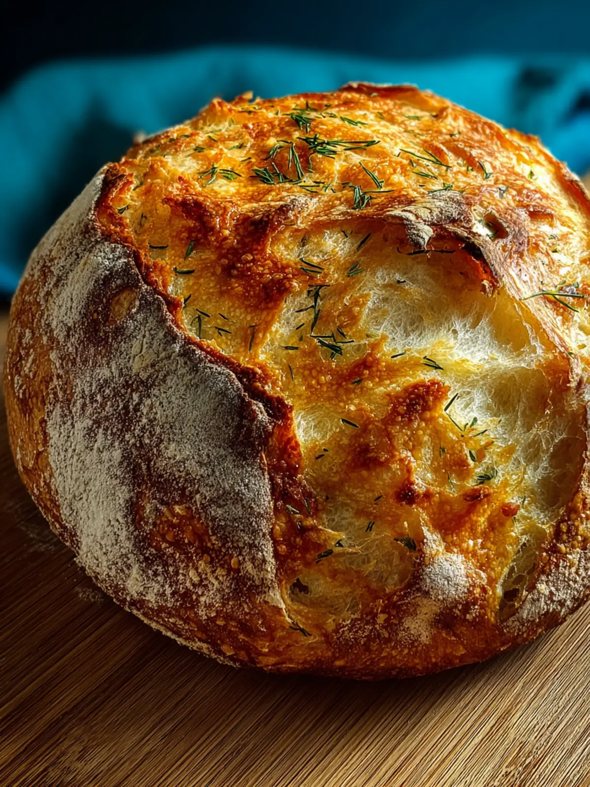 Absolutely! The beauty of the no-knead dill gouda artisan bread recipe lies in its versatility. Feel free to experiment with other fresh herbs like thyme or basil, or switch up the cheese with sharp cheddar or creamy feta. Just keep in mind that adding moist ingredients may affect the dough’s hydration, so adjust water accordingly.