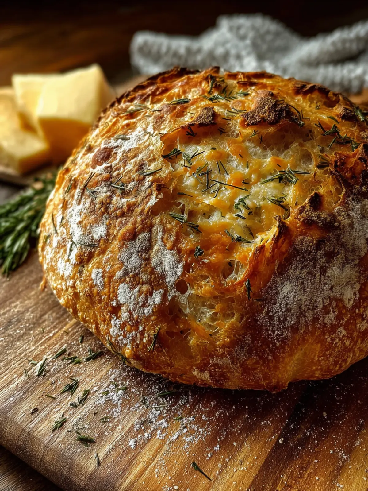 No-Knead Dill Gouda Artisan Bread: Effortless Gourmet Delight