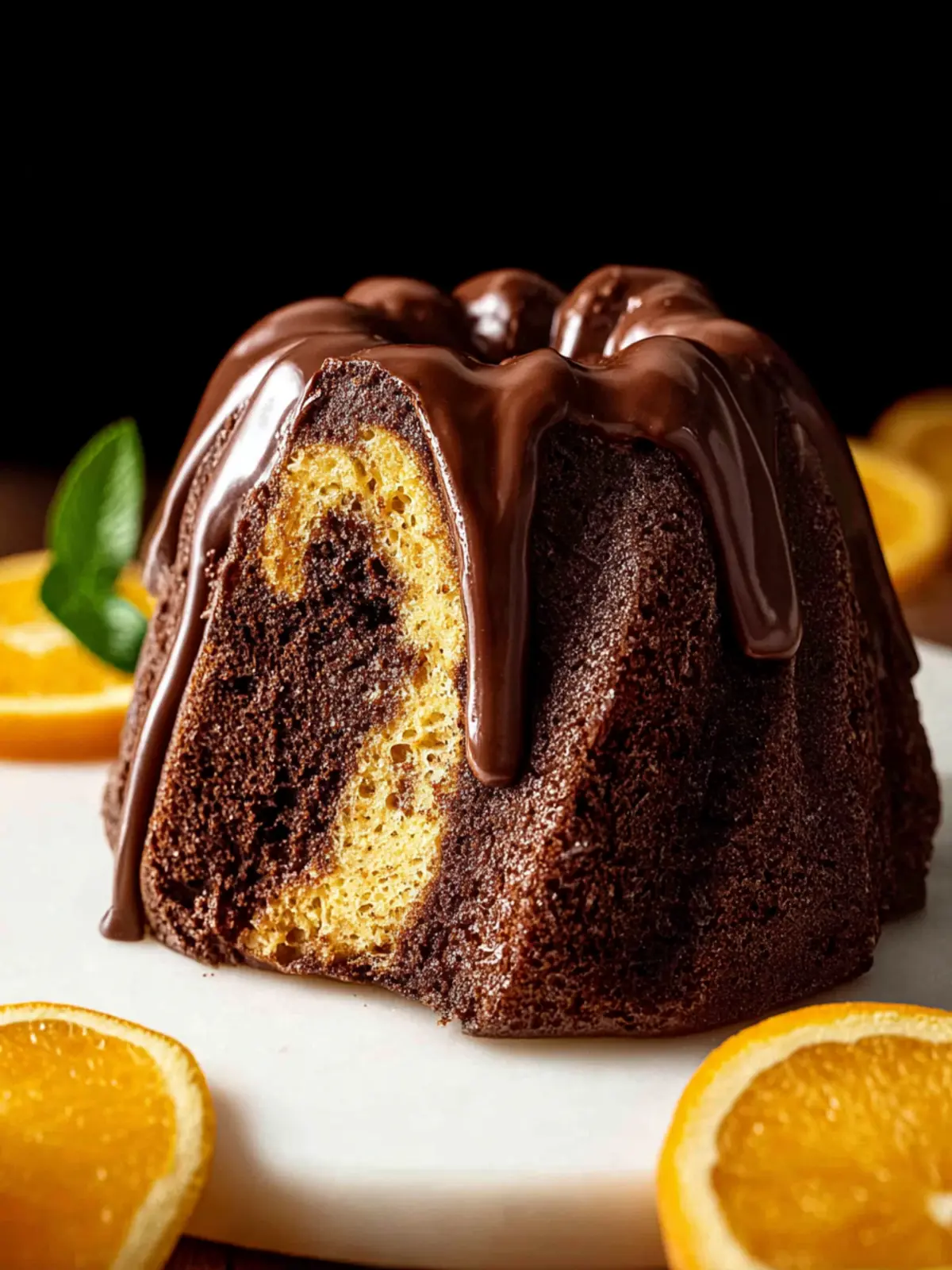 A rich and flavorful marbled bundt cake combining the zest of oranges and chocolate.