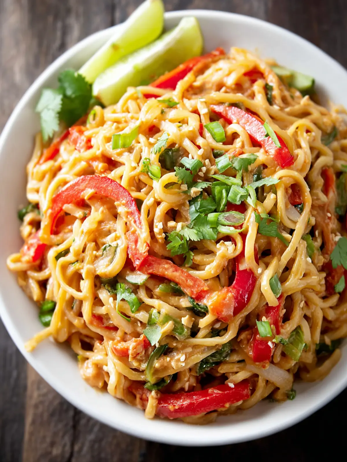 Switch up the base by using rice noodles, whole wheat spaghetti, or even zoodles (zucchini noodles) for a gluten-free or low-carb option. Choosing different noodles can dramatically change the dish’s character while still delivering that crave-worthy peanut flavor.