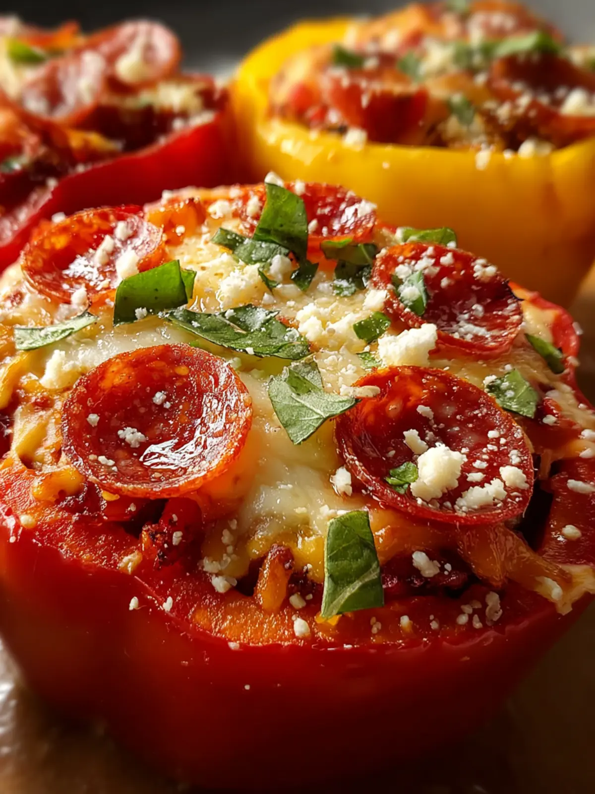 Delicious stuffed bell peppers filled with rice, marinara sauce, cheese, and mini pepperoni, baked to perfection.