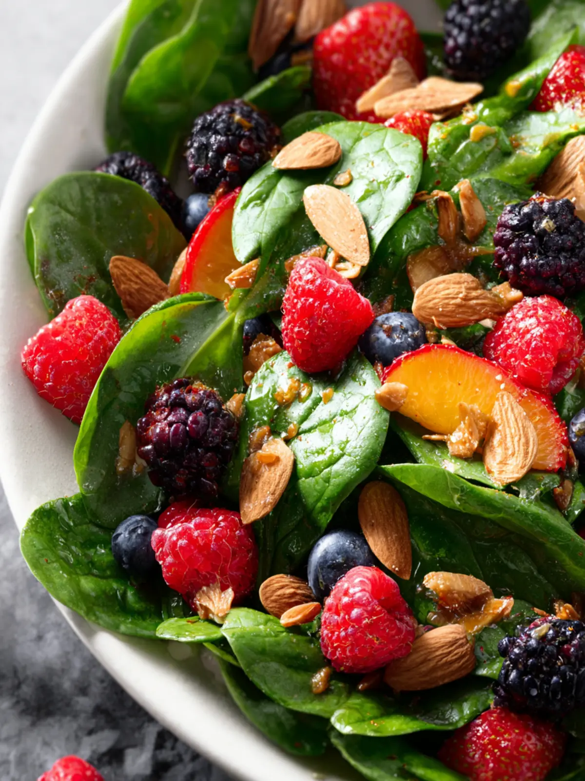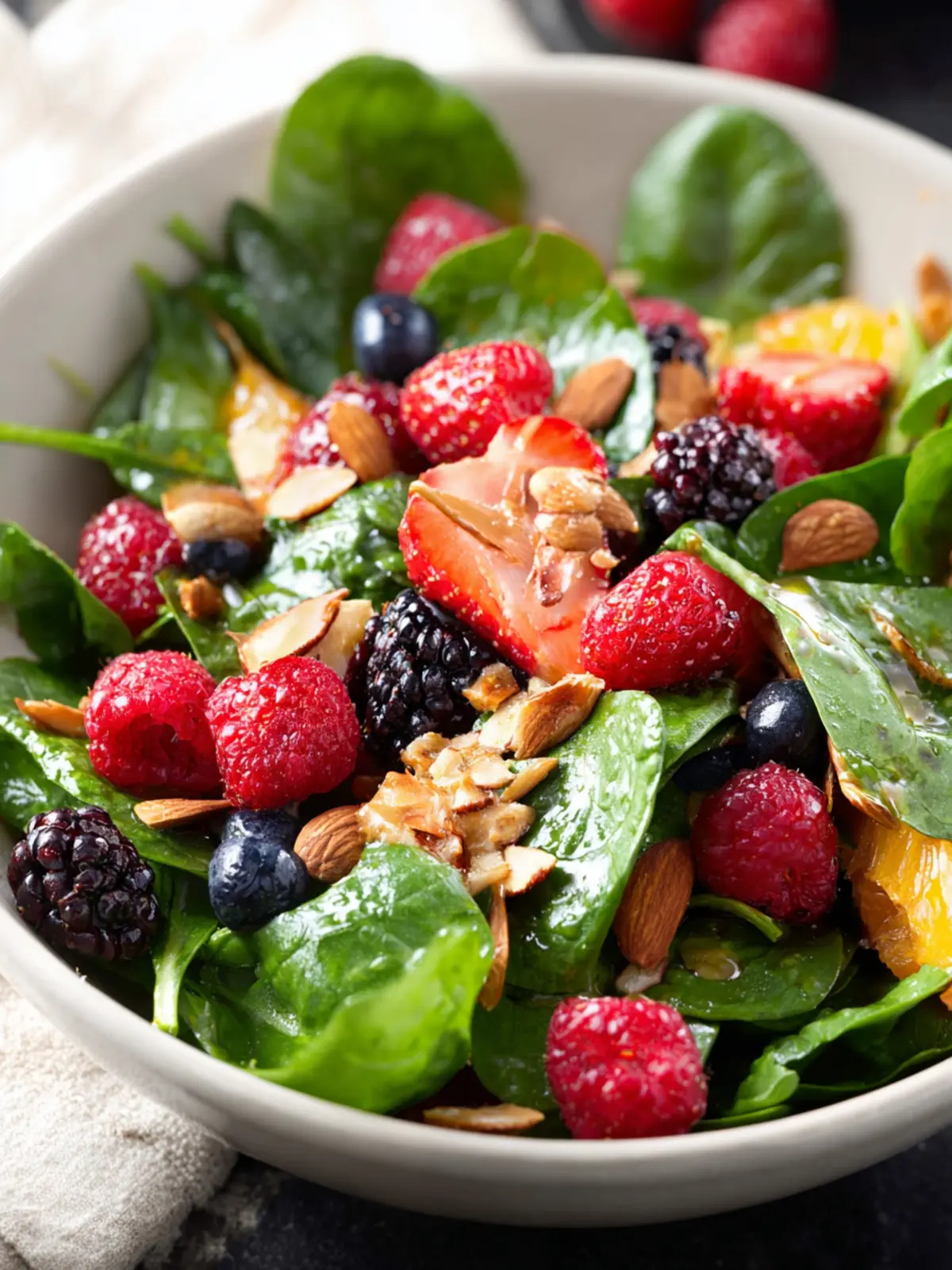 Spinach: Fresh baby spinach sets a vibrant base for the salad. Its mild flavor pairs beautifully with the sweetness of the berries, offering a refreshing crunch. Opt for organic if possible to maximize nutrients.