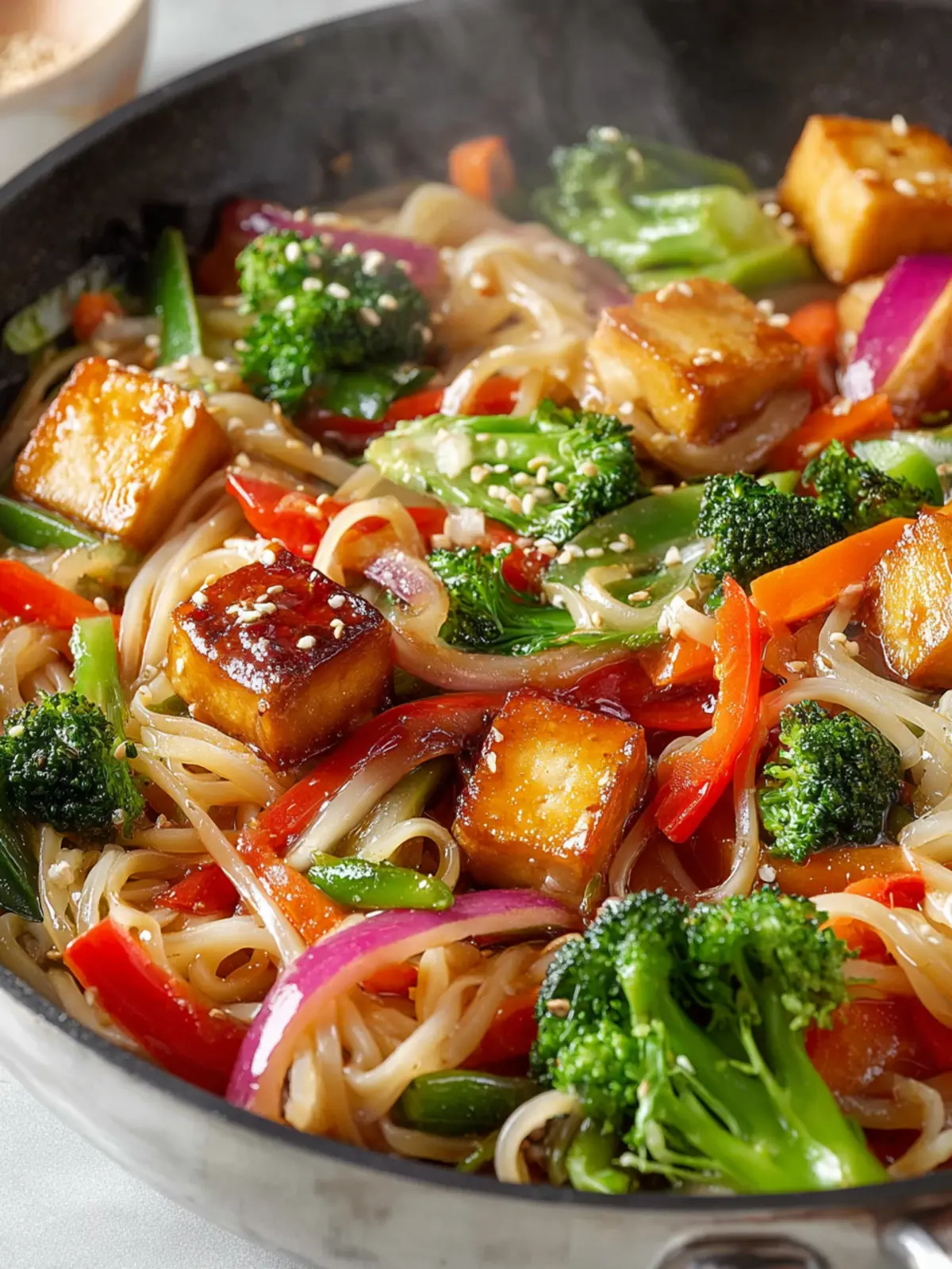 Leftovers from your tofu noodle stir fry deserve the best care! Allow the stir fry to cool down before transferring it to an airtight container. You can refrigerate it for up to 3-4 days. When reheating, a quick stir in a pan over medium heat will help revive those amazing flavors. If you think you won’t finish it in time, consider freezing it for up to 2 months. Just remember that the noodles may get a bit softer when reheated, but it’ll still be tasty!