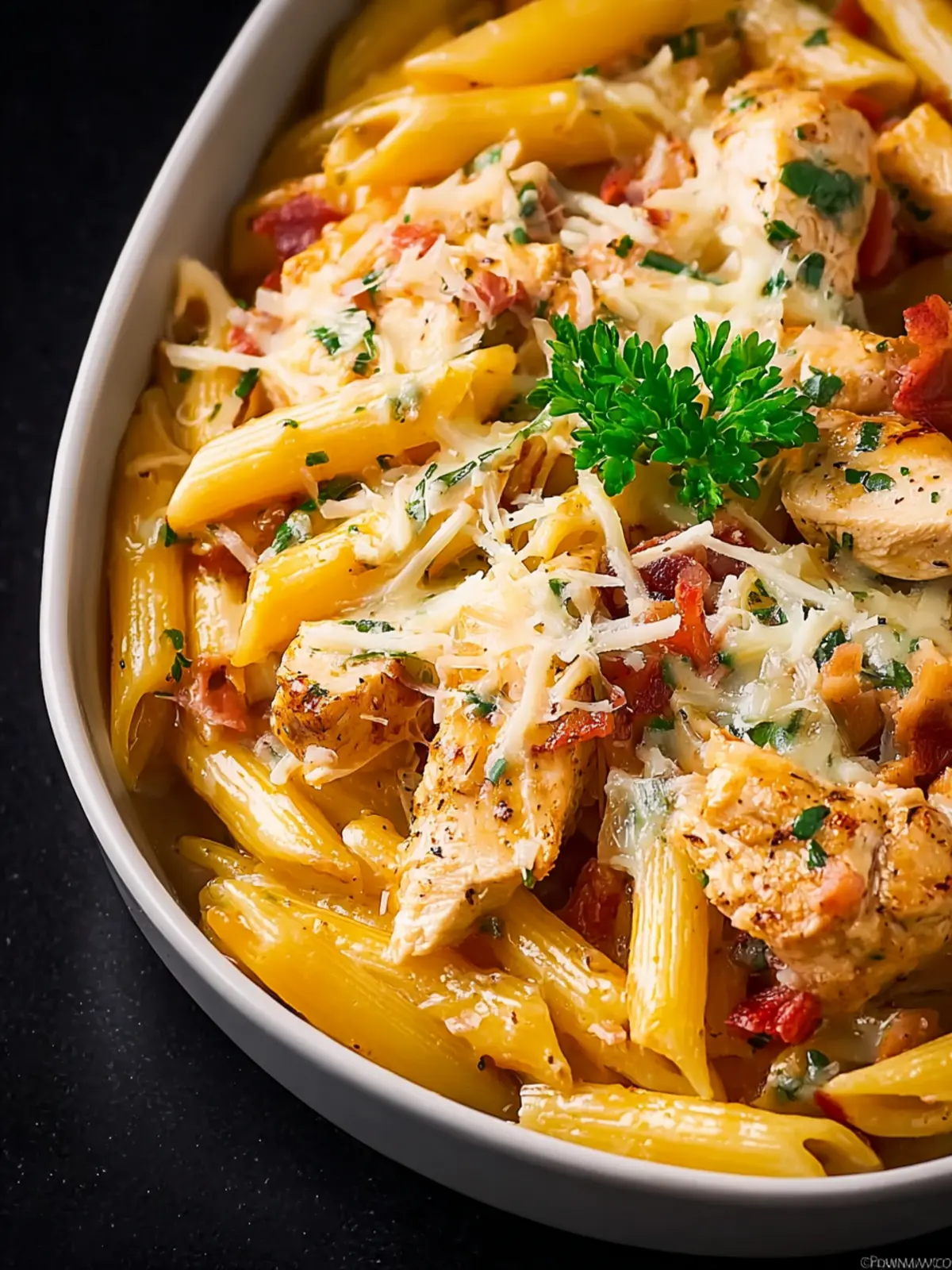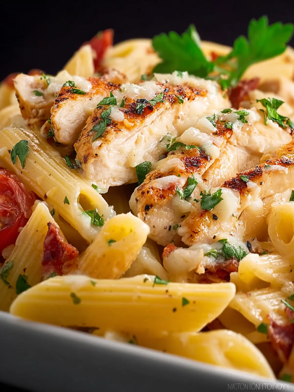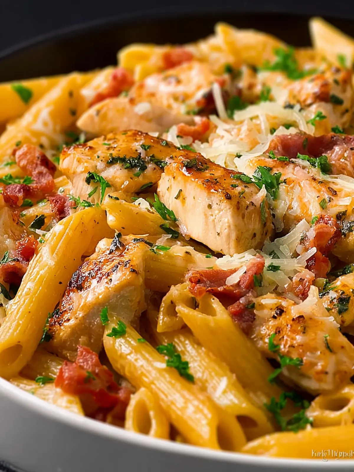 This creamy chicken penne pasta is a perfect weeknight meal that combines tender chicken, sun-dried tomatoes, fresh spinach, and a rich Parmesan cream sauce.