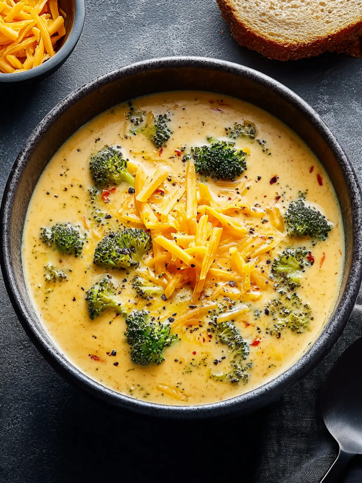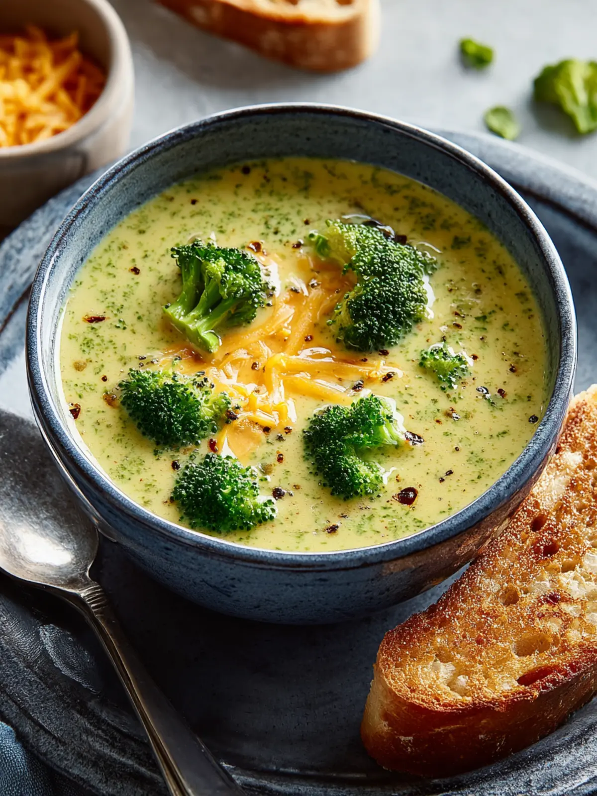 This creamy broccoli cheddar soup is rich, flavorful, and perfect for a cozy meal.